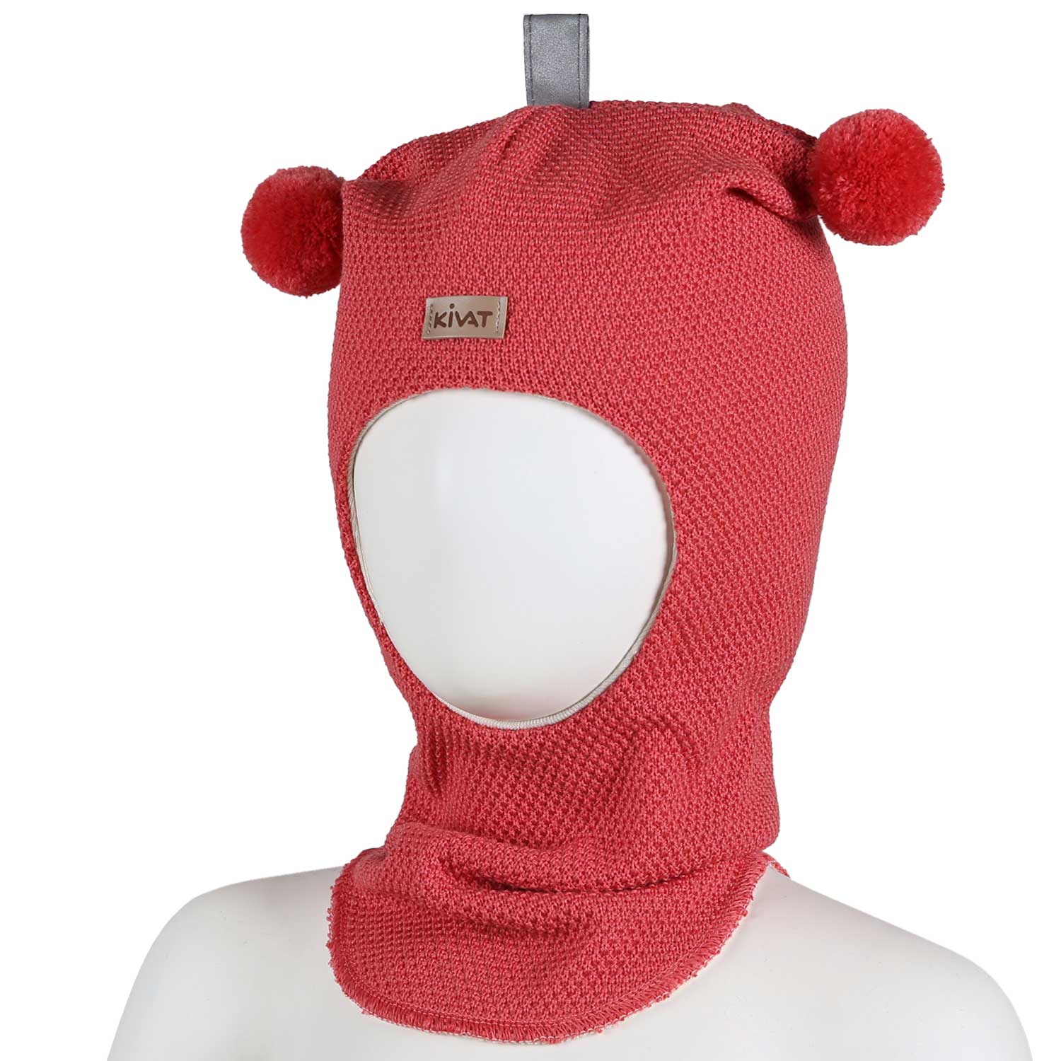 KIVAT balaclava made of beautiful three-dimensional knit called Pearl. KIVAT label and cute ball bobbles.