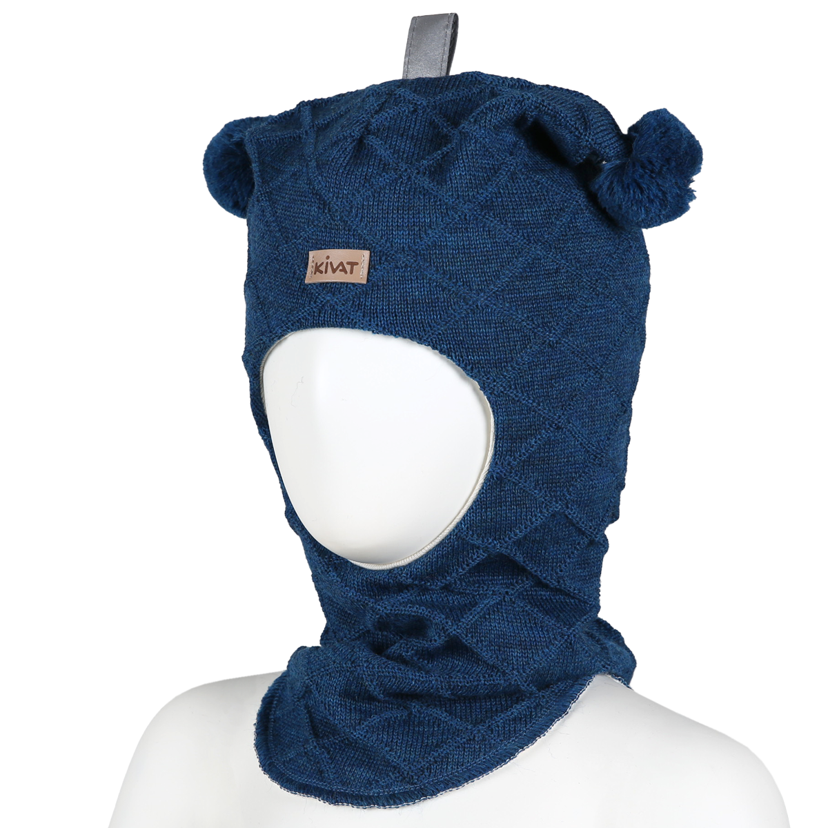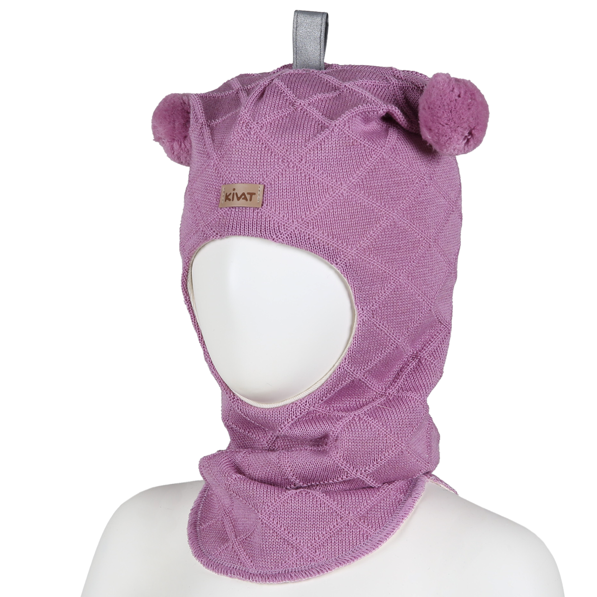 KIVAT balaclava with ball bobbles and KIVAT label in front.