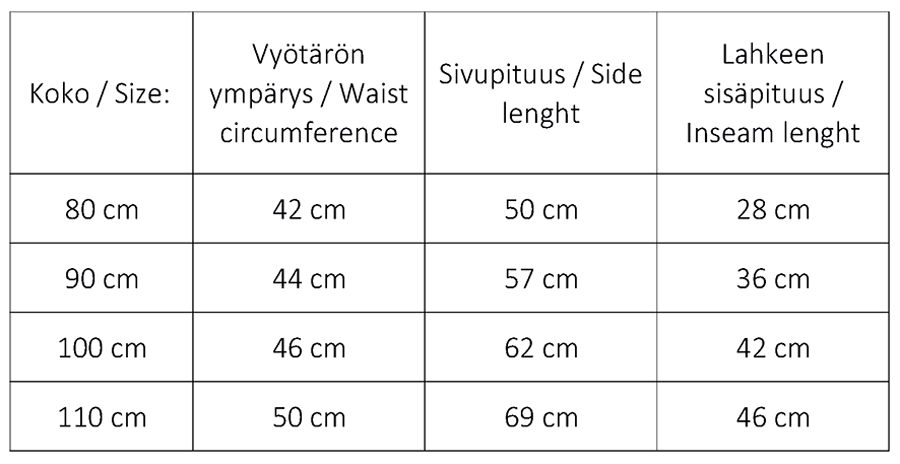 Kokotaulukon mitat ovat suuntaa antavia. Mitat ovat +/- 1 cm tarkkuudella.
