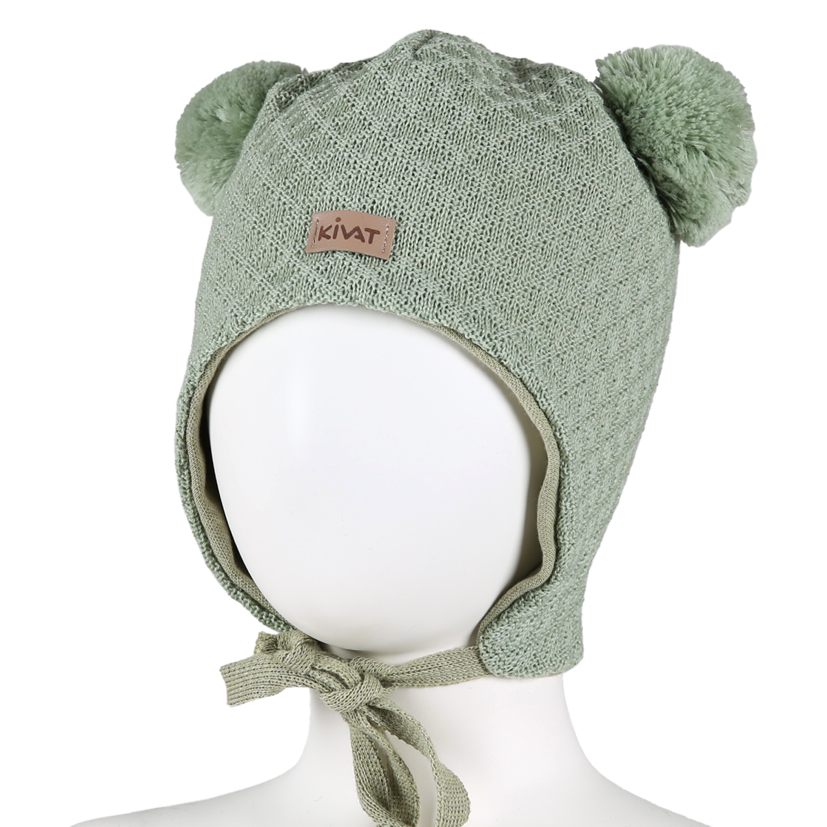 Wool KIVAT beanie with big bobbles and KIVAT label in front.