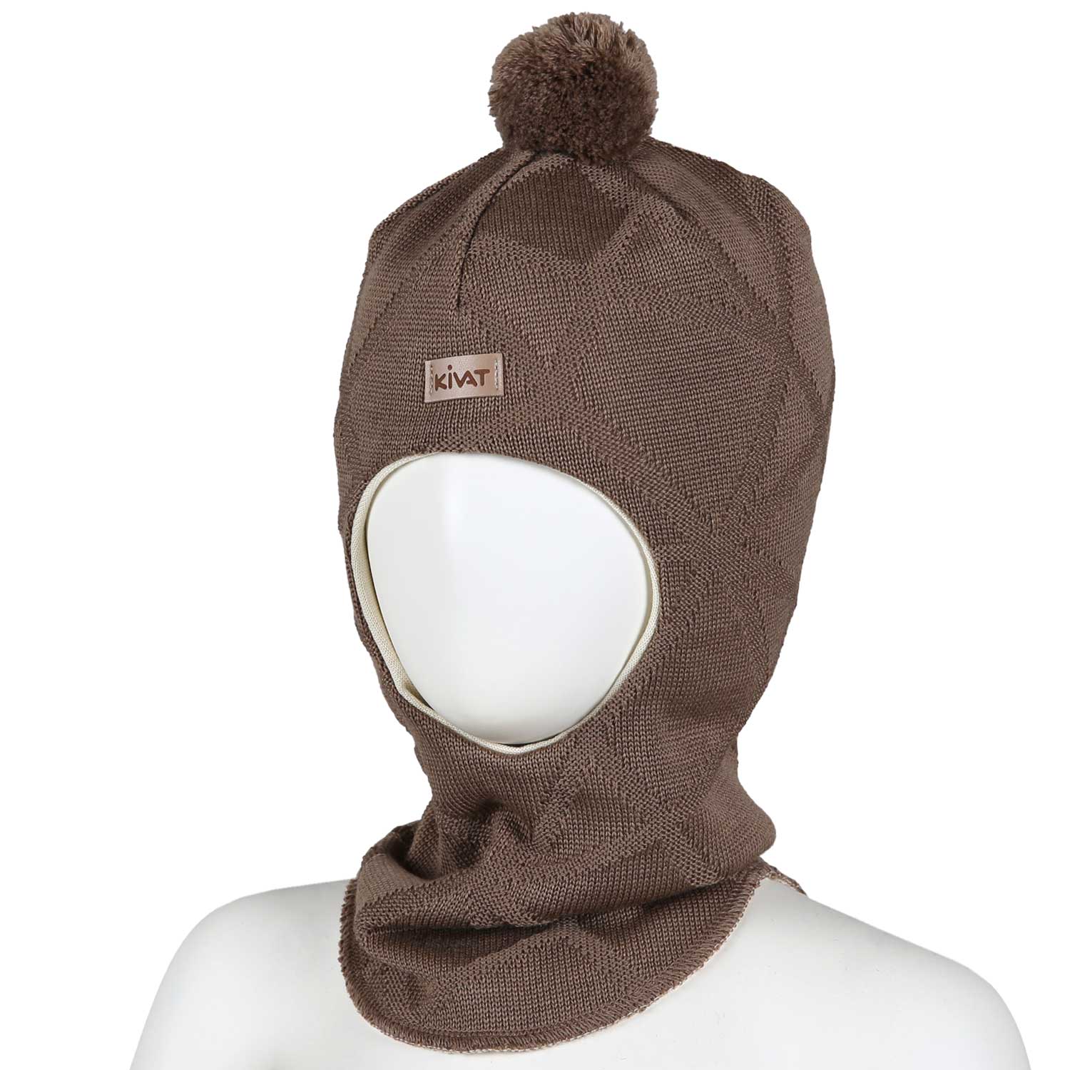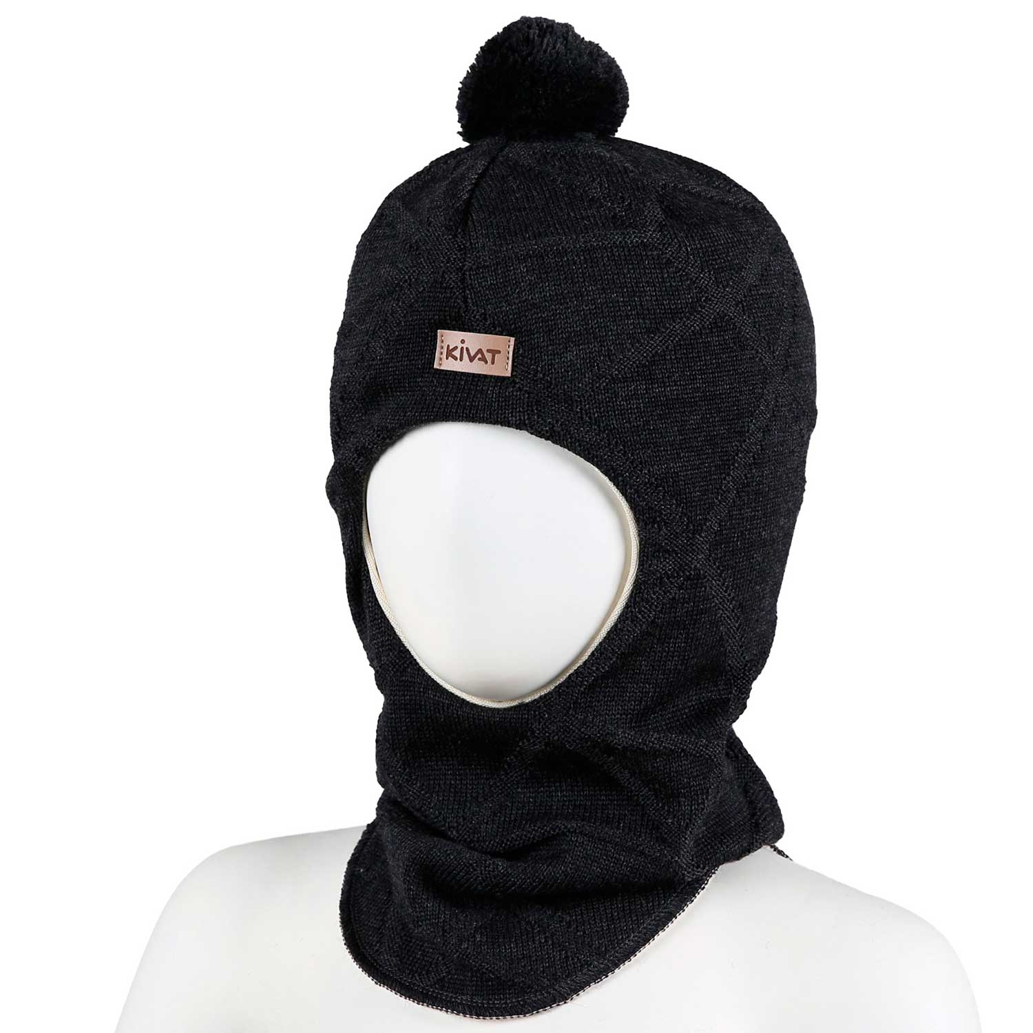 The balaclava has a KIVAT label, ball bobble and warm cotton wool at the forehead and ears.