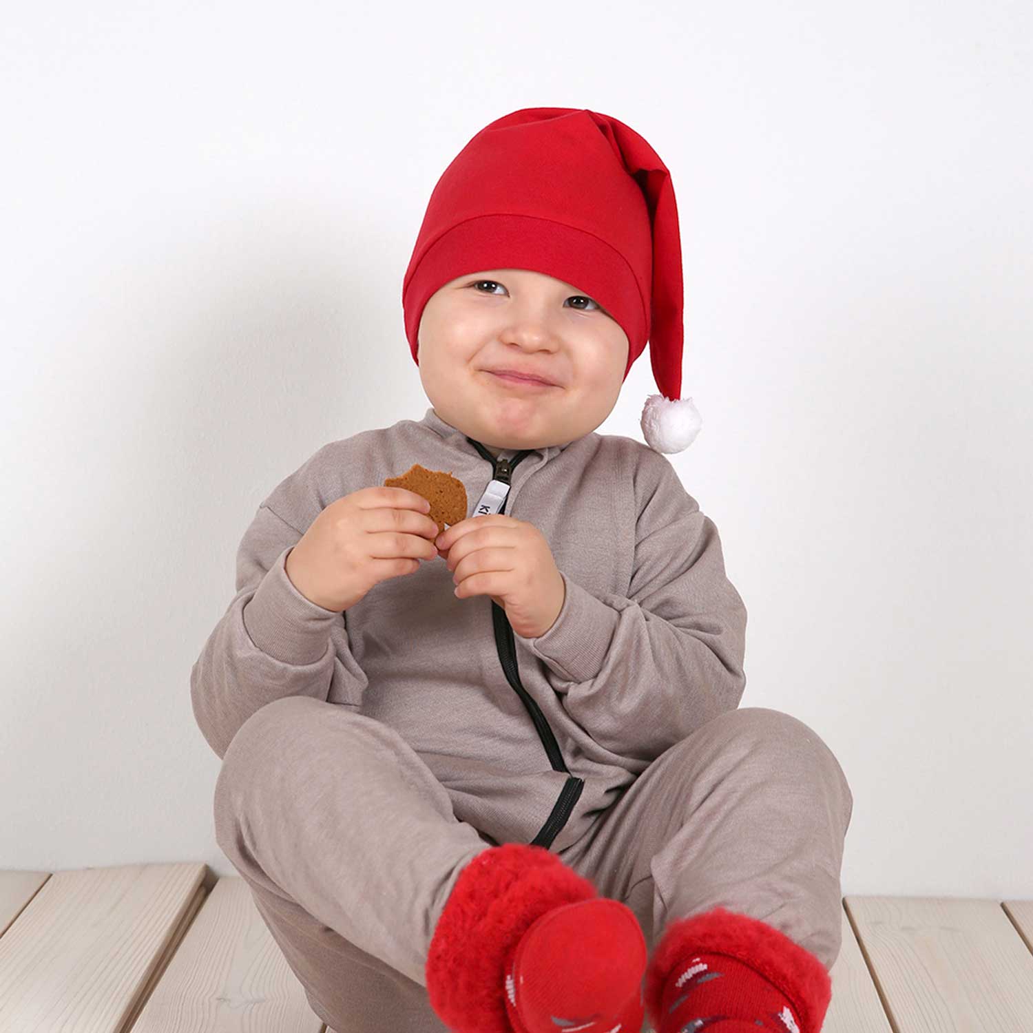 Organic cotton KIVAT Santa hat is made of a soft and flexible knit.
