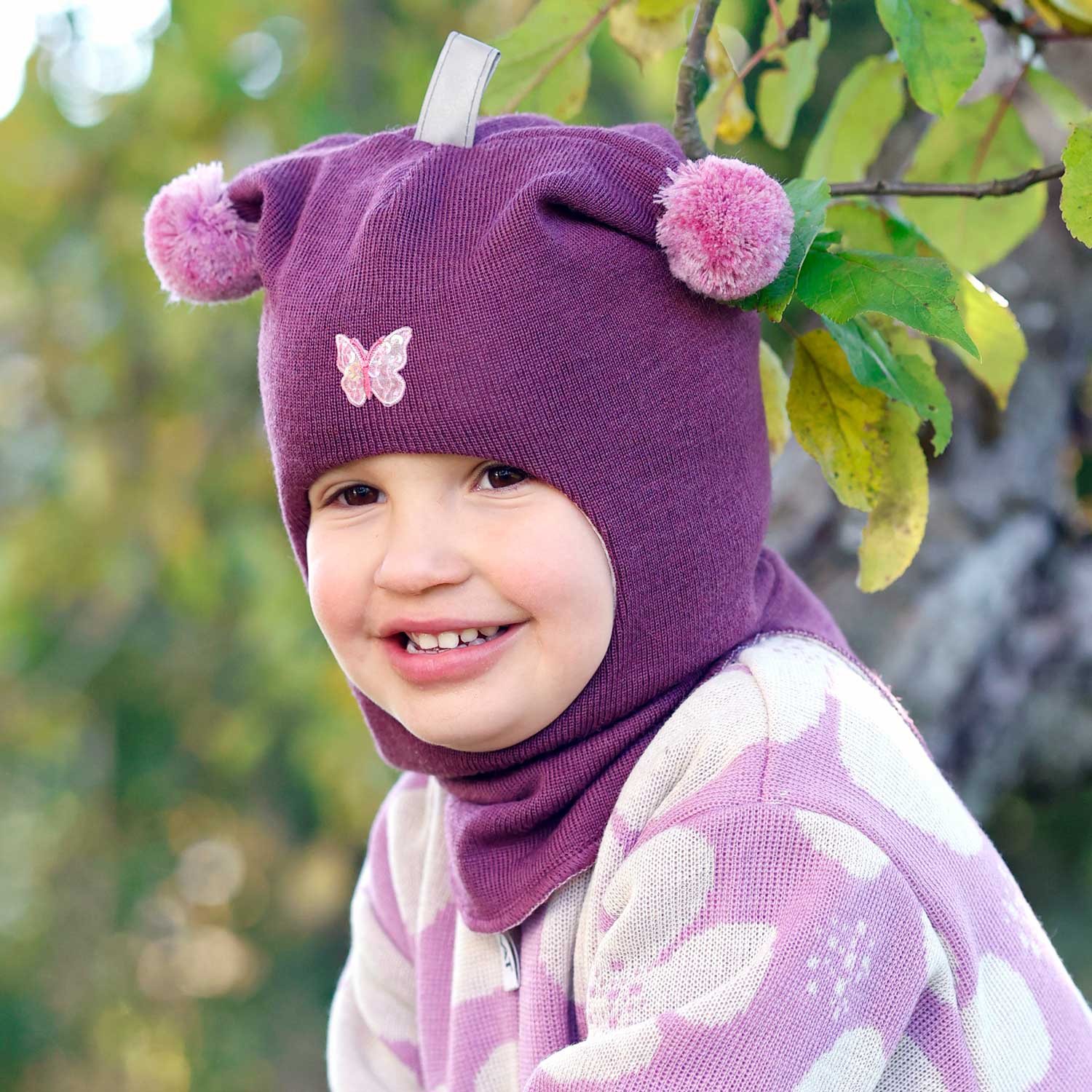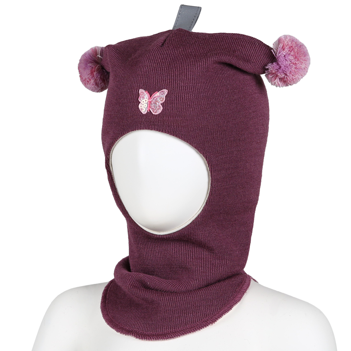 Balaclava i ull med sommerfugl